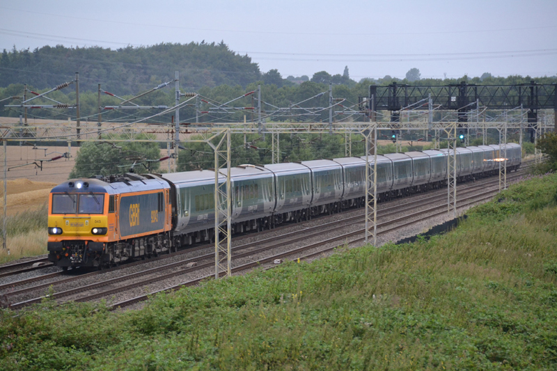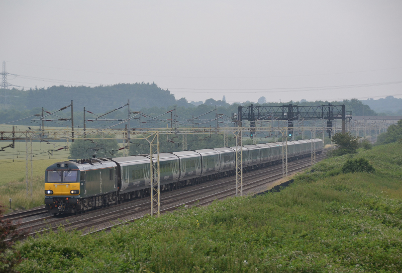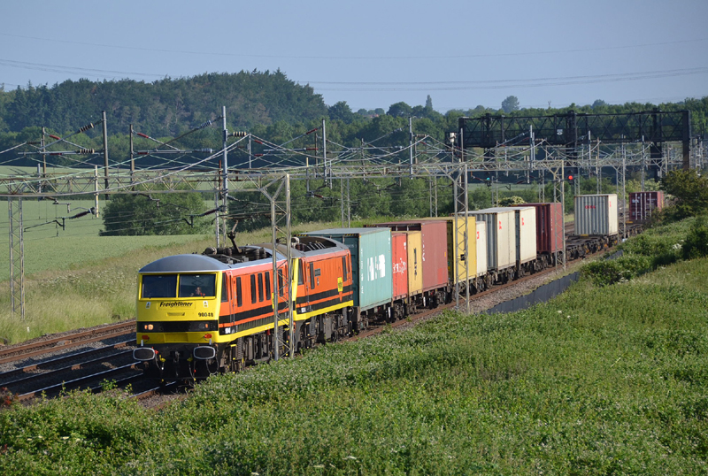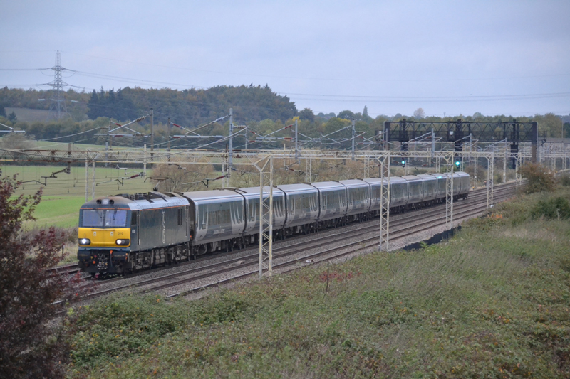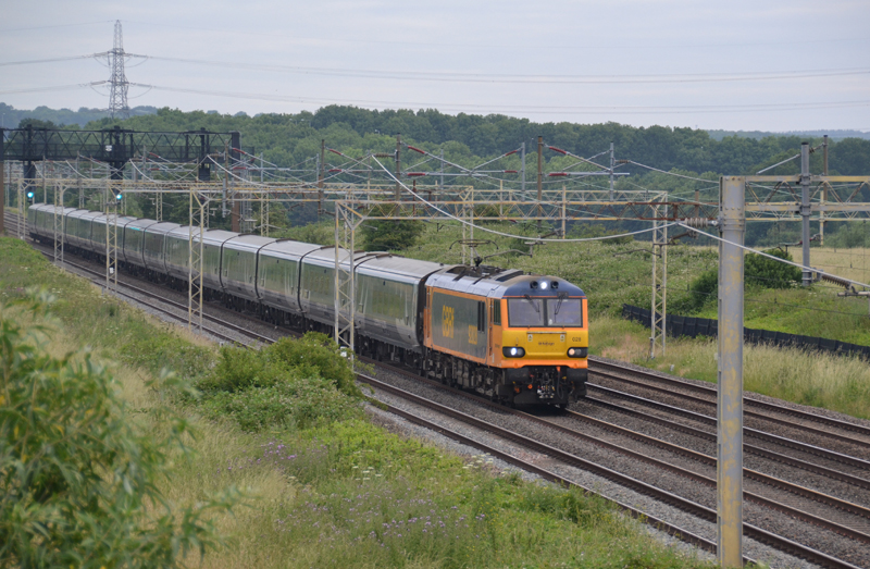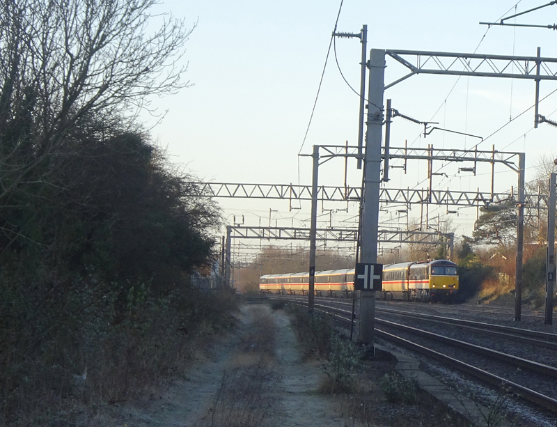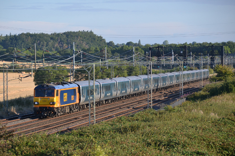 Thanks to “TC” for this view of June 1st’s 1M16 sleeper with 92043 powering up the ECML at Sandy’s New Zealand bridge