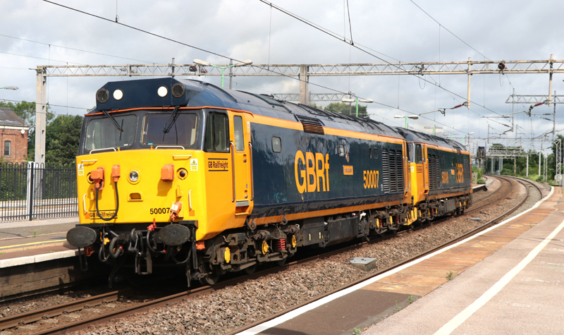 Thanks to Mark Beal for this image of 50007 and 50049 heading North through Wolverton with 0Z50 Stewarts Lane – Kidderminster on July 4th 2021