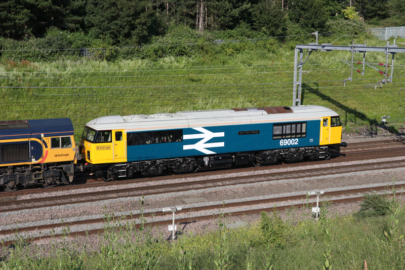 Mark Beal captures 69002 being dragged by 66716 from Tonbridge to Longport through Portway, Milton Keynes on July 18th 2021
