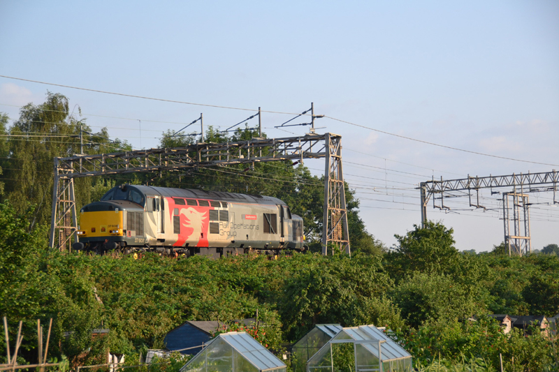 Growling away nicely, 37608 (formerly 37022) passes Linslade allotments en route from Leicester to Wembley on July 21st 2021
