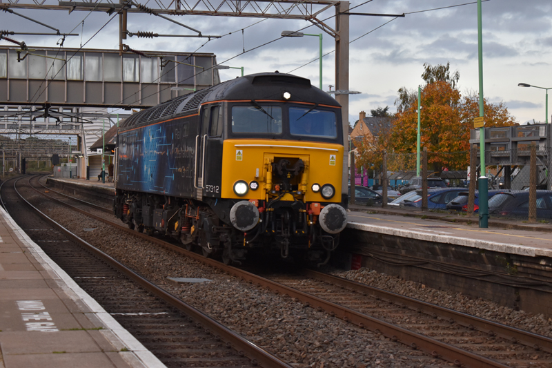 ROG Ronnie 57312 throbs through Leighton on a Derby – Wembley light engine move on October 28th 2021