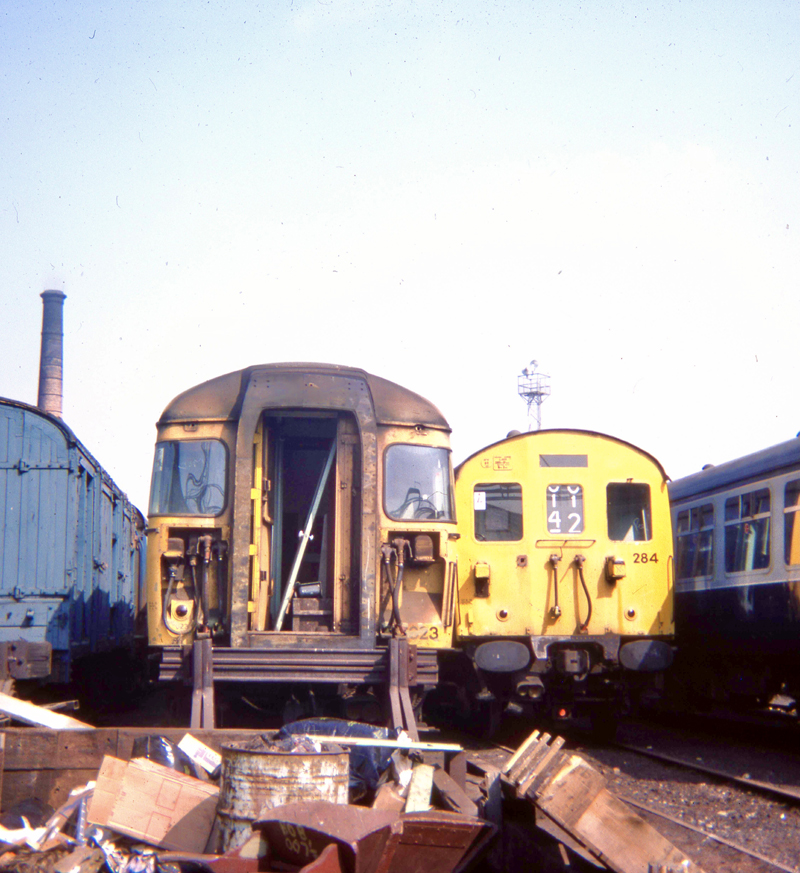 Steve Chapman captures class 302 and 309 units at Wolverton works Open day of August 21st 1976 with the famous Works chimney featuring too!