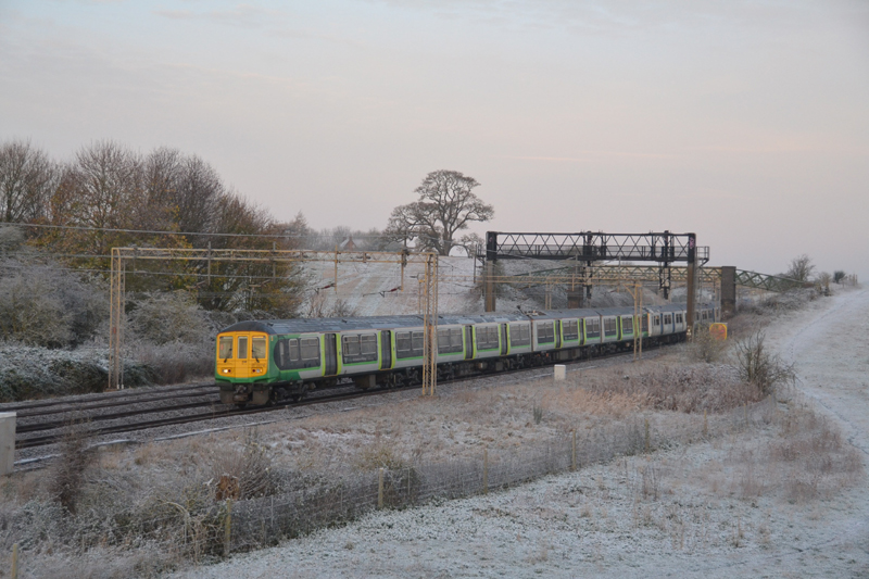 Lying snow in November is a rare event at Old Linslade and it helps to illuminate 319216, 219 and 220 on the booked 12 car 0753 Bletchley – Euston on November 29th 2021
