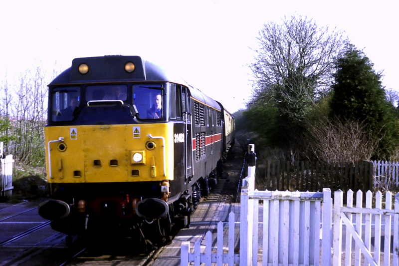 Dave Spencer catches 31468 leaving Woburn Sands tailing the 0946 Bedford – Bletchley on April 1st 1999
