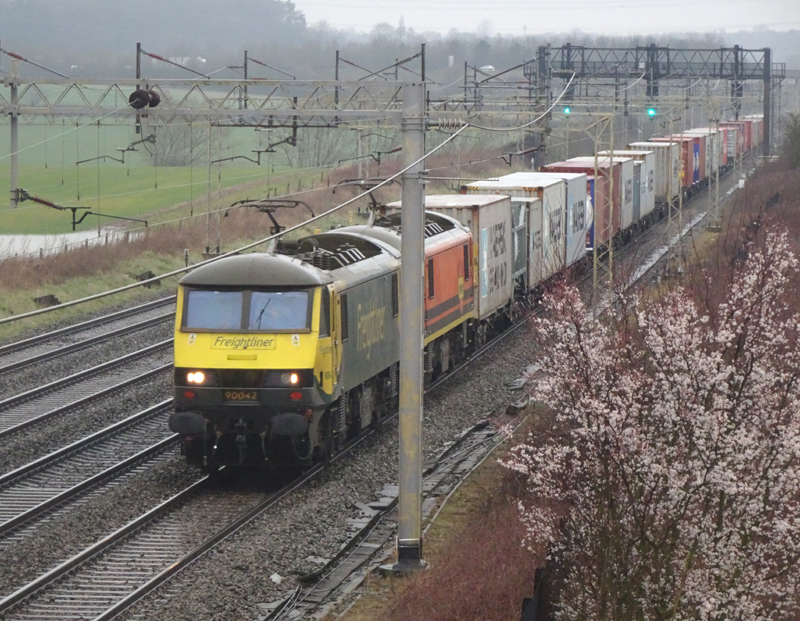 The blossom is out at a drizzly Ledburn to welcome 90042 and 90015 on 4L89 “Up Scotch” liners on March 4th 2022