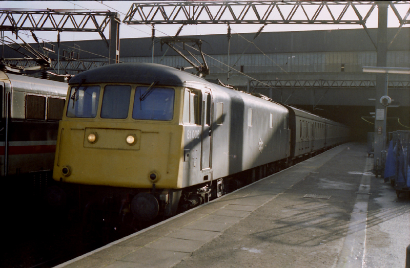 In strong winter sun 81006 awaits departure time with 1L00 Euston – Edge Hill footex on January 11th 1986. This QPR football special saw them loose 3-2 to Everton in an exciting game.