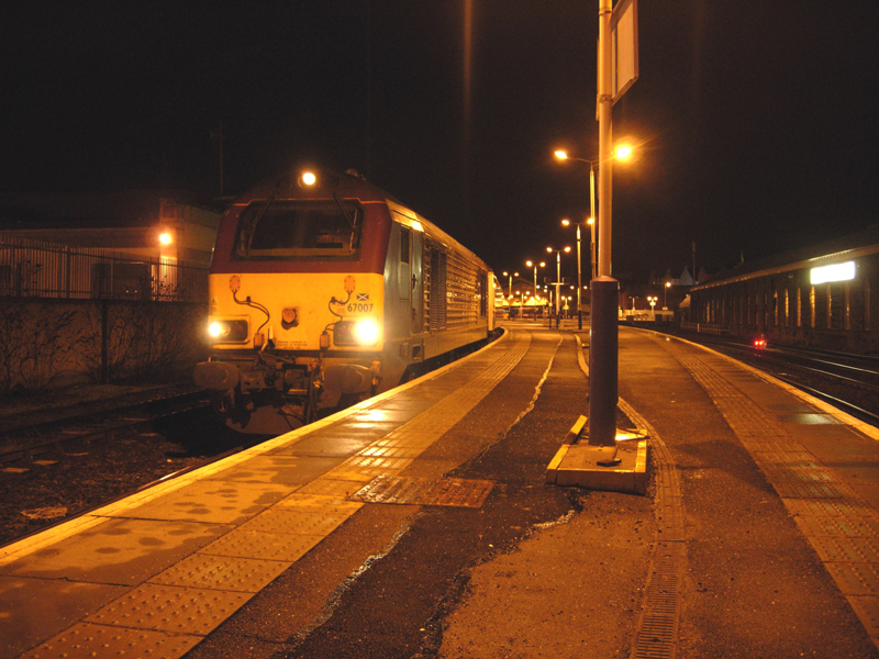 Many will remember 67007 as very much a Scottish skip seen here with 1M16 sleepers at Inverness on January 20th 2011
