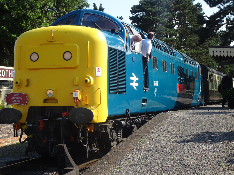 A first for the Glos-Warks in a visiting Deltic, 55019 awaits the RA from Gotherington with the 0930 Toddington – Cheltenham on July 29th 2022
