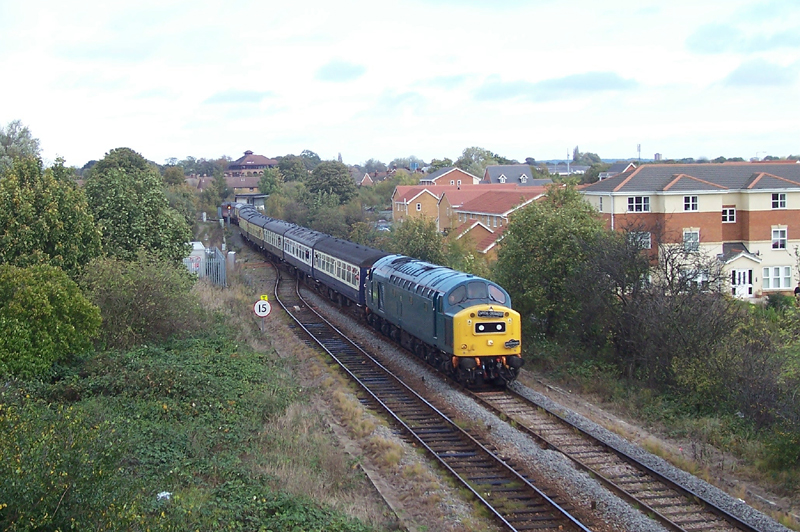 Not in the best of weather D1015 Western Champion worked the “Westbury Wizzo” tour throughout from East Midlands Parkway to Westbury and Cranmere via the branch, unusually in both directions. 1015 is seen here on approach to Bedford with the outward leg of the tour