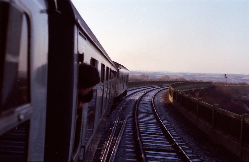 The “Mendip Artificer” took a Pancras commuter rake from St Pancras to Bedford where 45121 ran round to work to Bletchley, Claydon, Oxford, Swindon and Westbury. Very rare Western Region track for a peak. 45121 is seen here crossing Bletchley flyover with the tour
