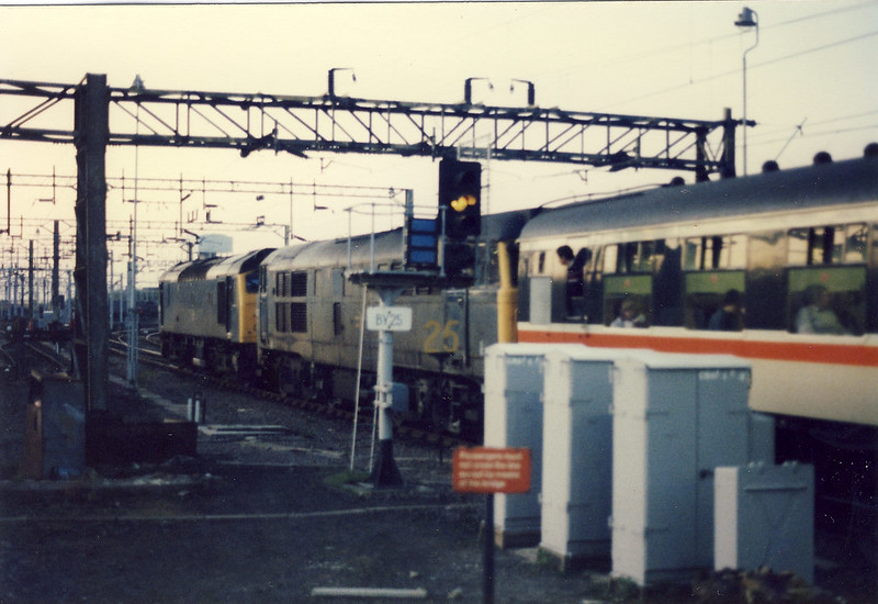 25198 and 31217 worked the return BBRUA Railtour from Eastbourne to Bedford from Mitre Bridge Jn via Bletchley having replaced 47597 here. The rare duo seen leaving Bletchley below..This tour called at all stations Bletchley – Bedford too!
