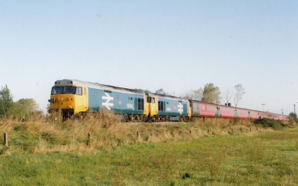50031 and 50049 worked Pathfinder’s “Alton Observer” Tour from Sheffield to London Victoria via the Midland and then down the branch. “TC” photted the pair near Forders as shown below