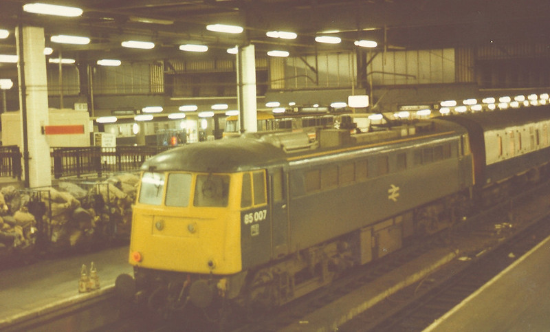 We returned South the next night, planning to leap at Birmingham, which became Crewe because of late running. So early on Wednesday September 5th 1989 a 304 “Dinosaur” unit was put on for us non stop to Birmingham. The initial plan of heading to Cardiff for a trip over the Marches was put on hold when required 85011 appeared on 1H29 0805 Birmingham – Manchester.