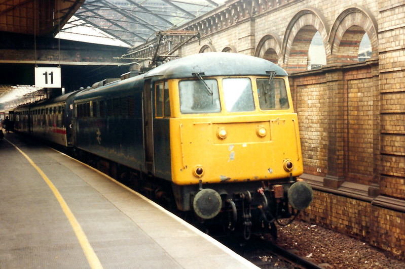 Shortly after this phot of 85011 arriving at Crewe with the ECS to form the 0918 Crewe – Glasgow Relief the forwarding driver demanded a fitter. Down went 011’s pan and down went our hopes but all was sorted, the pan went back up and 85011 roared North to Glasgow on August 24th 1990.
