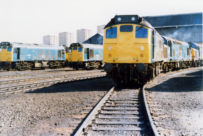 Plenty power (54 locos) on Eastfield with class 25s and 37s in this view on May 3rd 1980