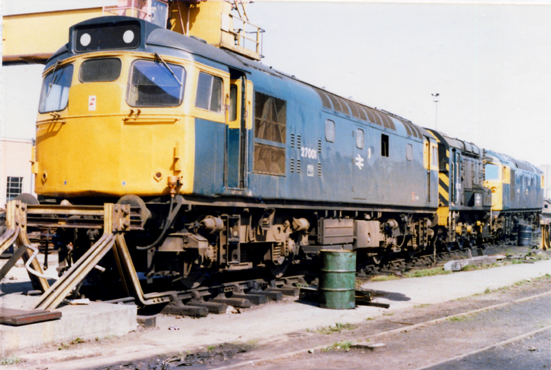 27001 (now preserved at Bo’ness), 08712 and 26003 at Glasgow Works May 3rd 1980.