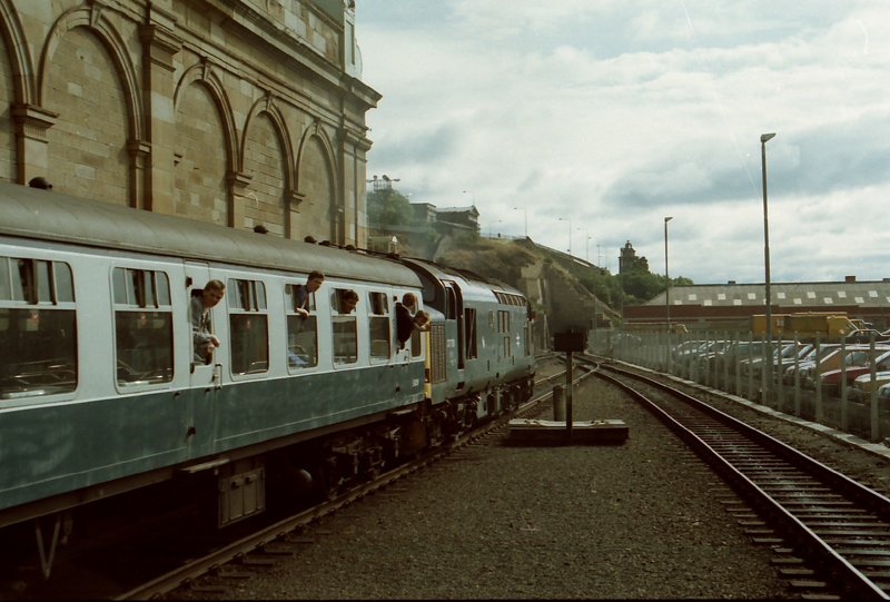 Bashers enjoy the tractor thrash from 37178 leaving Waverly with the 0748 Glasgow QS – Scarborough on July 26th 1986