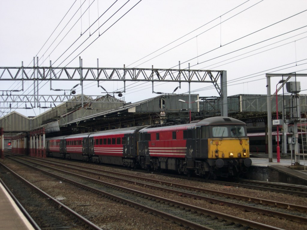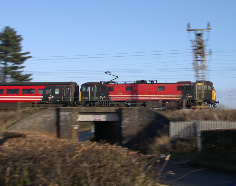 About to scream down the Trent, 87004 at Crewe with a Warrington – Euston service on December 29th 2004