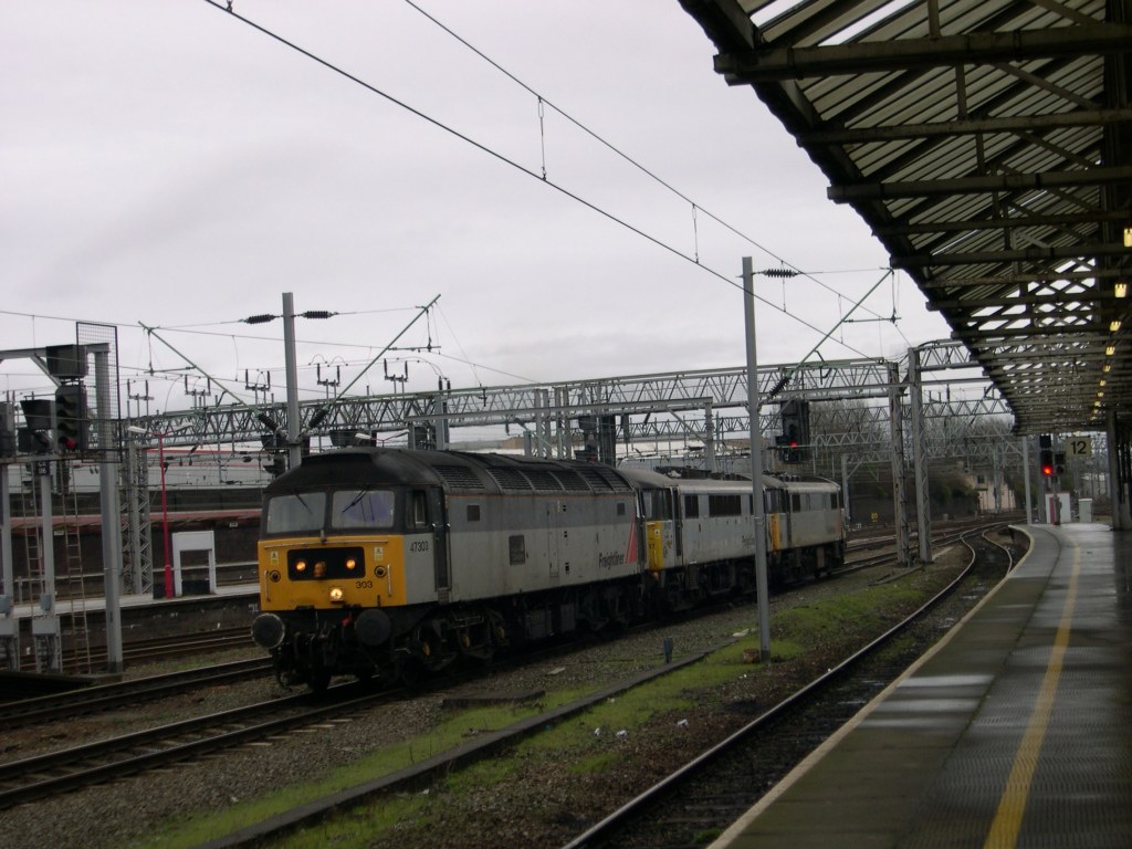 47303 drags 86633 and 86622 through Crewe probably bound for the Electric depot on December 28th 2004