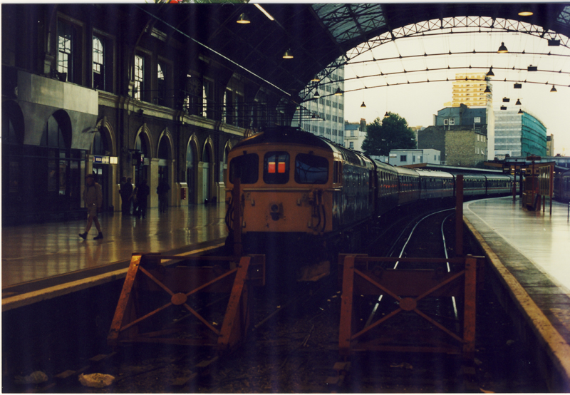 Met up with Steve Wolverton on the 0542 321 off Leighton. Despite the early hour conversation flowed as a sunny day beckoned. Engineering work outside Euston saw 2 x 37 and 2 x 60 on ballast jobs, the days of 25s on such turns a distant memory. 33116 was at the blocks at Victoria with the Tour emcars, 33030 and 33051 at the country end along with the surviving 33019, 33025, 33026, 33046 and 33202 active elsewhere on the day in a once 98 strong fleet.