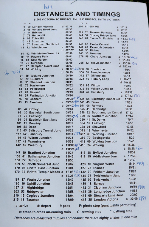 Much noise from up front on the 1 in 37 climb up to Exeter Central where a huge bellow went from us on passing, nostalgia eh! Old mule haunts followed, an out of place 20188 was viewed preserved at Yeovil Jn, leaving Salisbury the reality of perhaps being the last time we leave here behind Cromptons briefly set in before more bellowing from the train as wepassed every shack! Unfortunately we left the main line at Byfleet Jn for the usual railtour totter via Staines and Barnes before Clapham Jn and finally Victoria at 1954 precisely some 15 early. Entering Victoria there were loud hoots from up front and cheers from many aboard, a classic farewell tour was over.