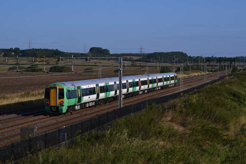 Nice early morning light for 377208 on the early Balham – M.Keynes at Ledburn on August 12th 2014