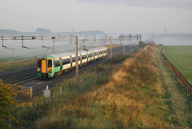 Autumn mist down Ledburn way on September 24th 2011 as 377206 heads South from the Keynes at Ledburn