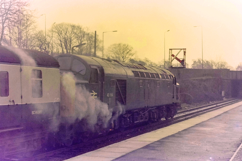 40164 in trouble at Dunblane with a traction motor fire on 1T26 0920 Aberdeen – Glasgow, Dave bailed here and advises the 40 limped furthur South on Feb 22nd 1981