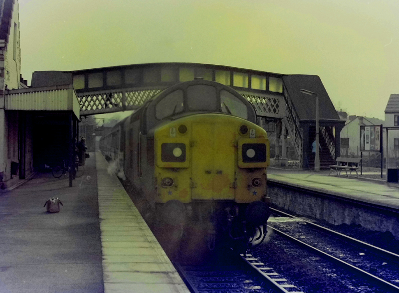 37022 arrives at Dunblane with 1A07 1125 Glasgow – Aberdeen, an unusual sighton Feb 22nd 1981