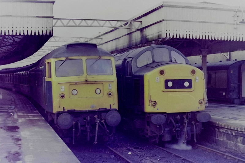 Classic Aberdeen power heading South, 47412 on 1G27 1650 Aberdeen – Edinburgh and 40061 on 1T46 1720 Aberdeen – Gasgow on Feb 22nd 1981