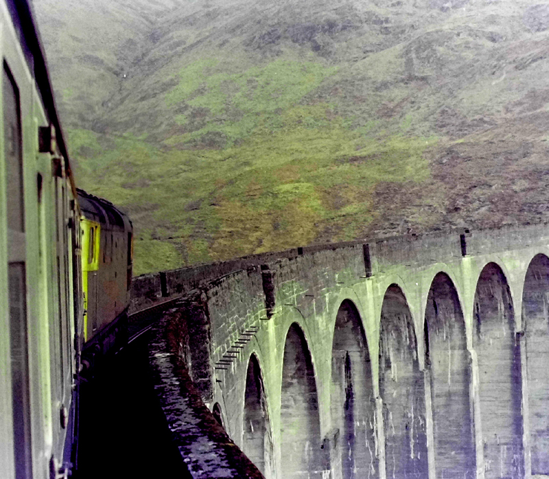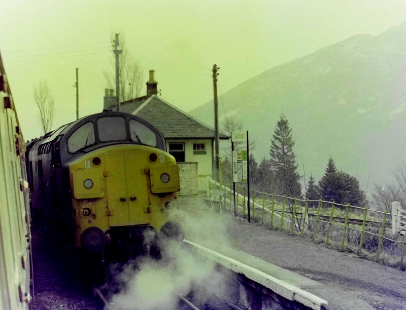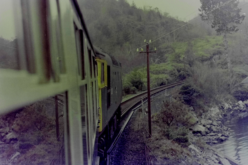 27018 dwarfed by the scale of the hills and Glenfinnan viaduct on February 23rd 1981