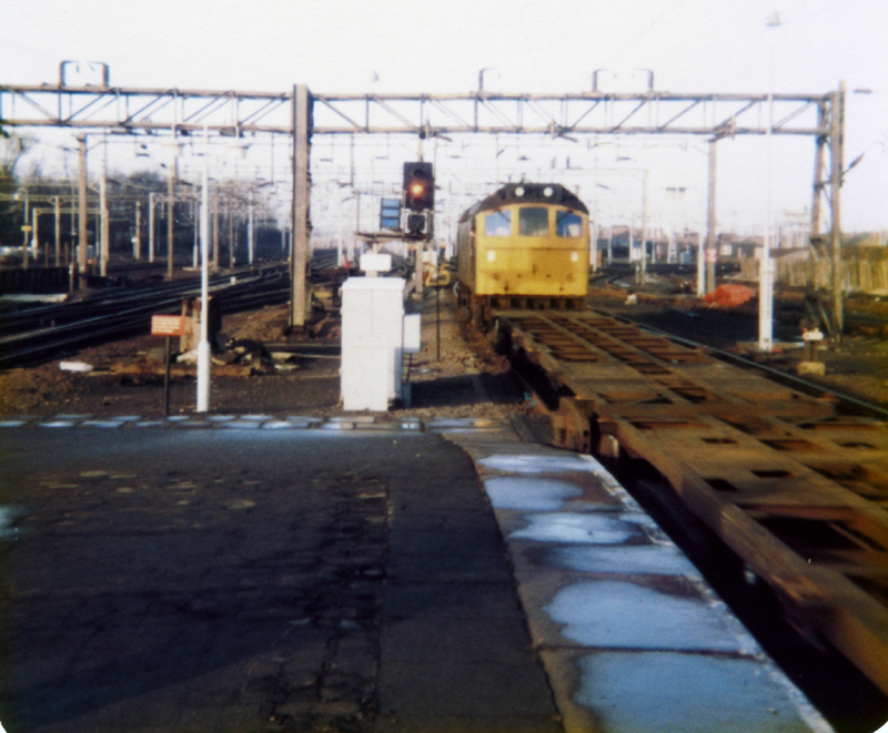25315 heads for the Bedford branch at Bletchley with 4M80 Kings X Goods – Stewartby Fletliner empties around midday on January 5th 1982