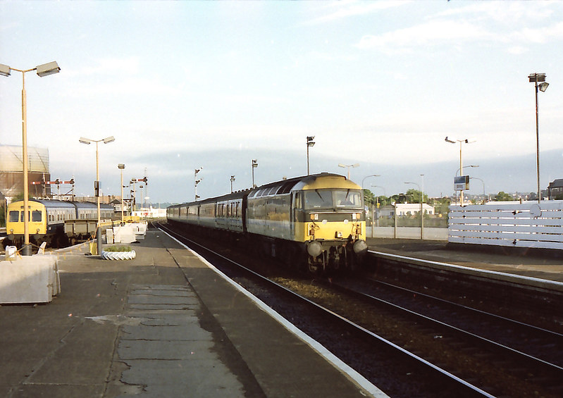 Fast run to Perth coming? 47712 passes under Stirling semaphores with the 1925 Queen St – Aberdeen on June 22nd 1986.