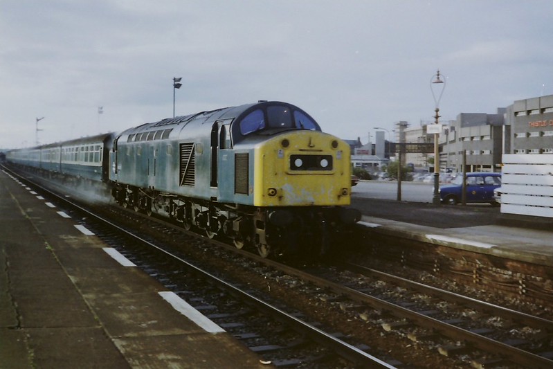 Fast run to Perth beckoning, Dave Spencer captures 40161 arriving at Stirling with the 0740 Glasgow QS – Aberdeen on September 9th 1980.