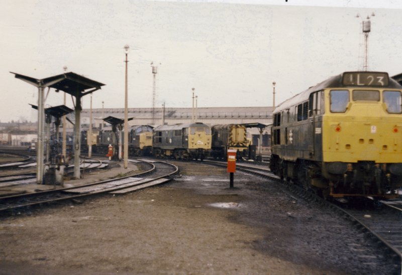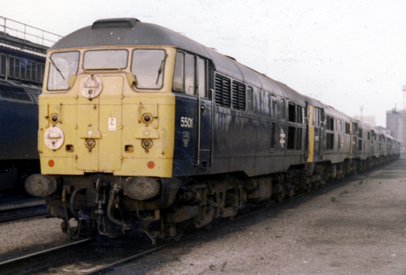 Most of us who visited Stratford in the 70s will remember long lines of class 31’0 “toffeeapples”, here John Williams captures 5501 (later 31001) at the head of a long line of her classmates on November 3rd 1973
