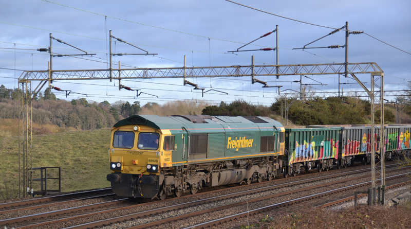 66620 with stone empties from Wembley to Peak Forest, 030223