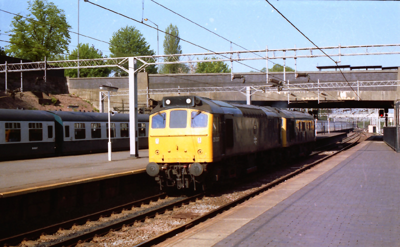 As the can leaves Coventry with the tour on May 13th 1984, 25207 and 25072 return to Bletchley light engine, drag duties over