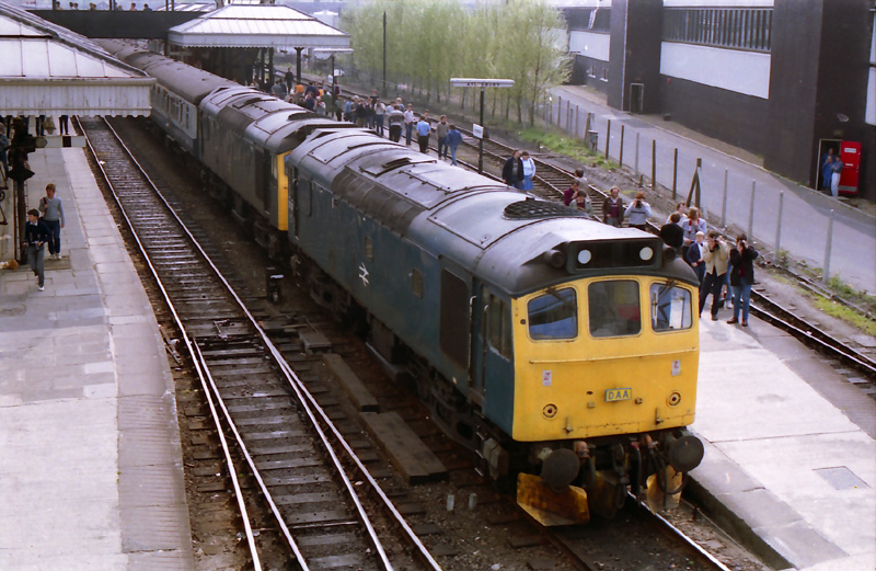 Thanks to Trev Rolfe for this platform view of Aylesbury of 25316 and 25321 with the tour, May 4th 1984