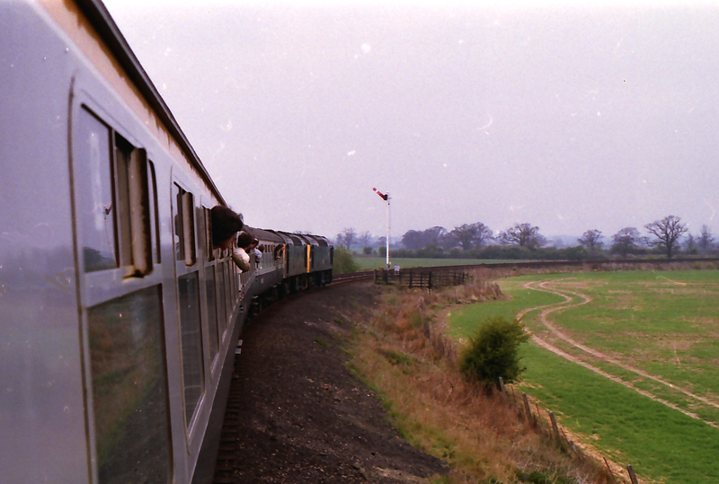Rat thrash! Thanks to Trev Rolfe for this atmospheric view of 25316 and 25321 powering up the Incline near Bagworth with the tour, May 4th 1984