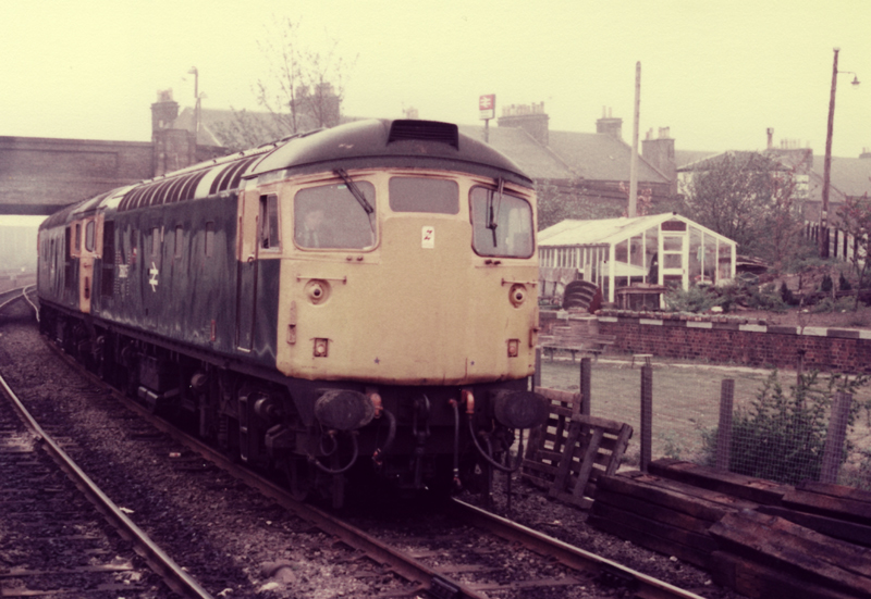 Thanks to Trev Rolfe for this nice view of 20146 and 20110 at Kilmarnock with the tour, May 5th 1984