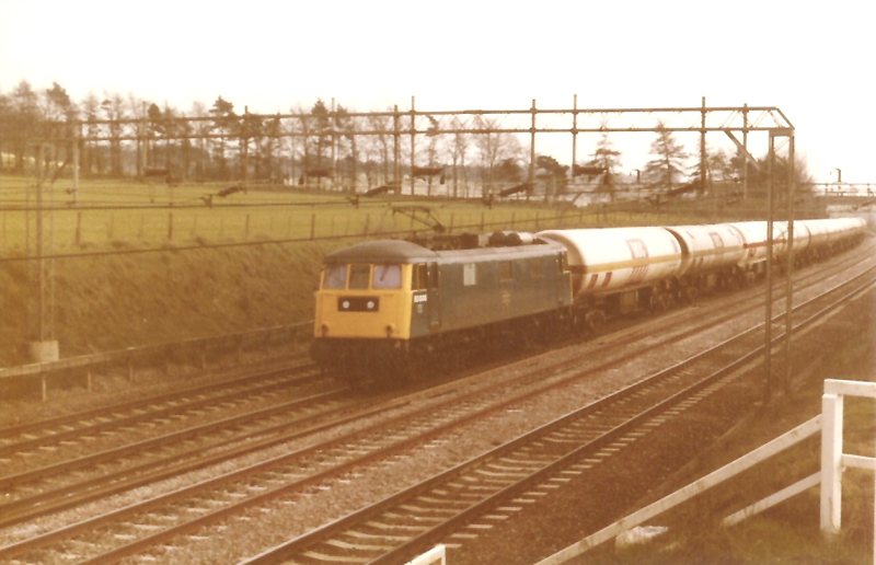 In atrocious weather on 140880 85015 on the 2157 Dewsnapp-Willesden collided with rear of the 0116 Ditton-N.Wembley BOCS. 2 BOC tanks were damaged as were wagons on the freight and 85015 received severe front end damage and spent several years in Crewe Wks being rebuilt. The collision just South of Roade closed the Northampton loop for 2 days