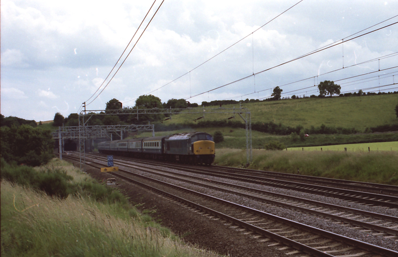 On the Leighton area’s day of the peaks our footex machine in later guise as 45149 takes the 1210 Euston-Sheffield North of Linslade tunnel on 030782. Booked engineering work closed St Pancras on this day and vast numbers of class 45’s visited the Leighton area as a result.