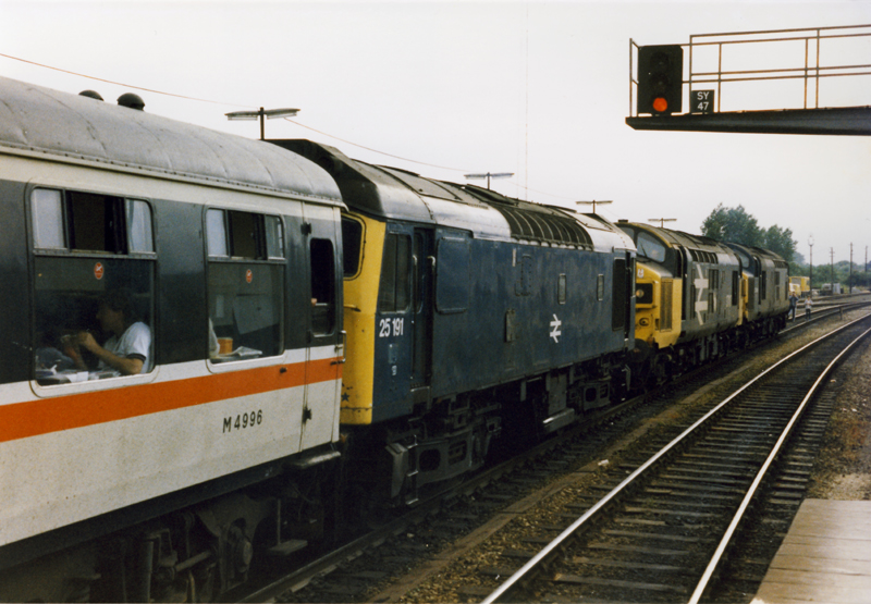 At Salisbury a good few of us bailed for the Exeter – Waterloo “mule” homewards. We had to view and flag off the exotic combination of 37046/37117 and 25191 working the tour forward from Salisbury to Temple Meads! 37117 was very required at the time, our Mule power in 50042 obviously not!