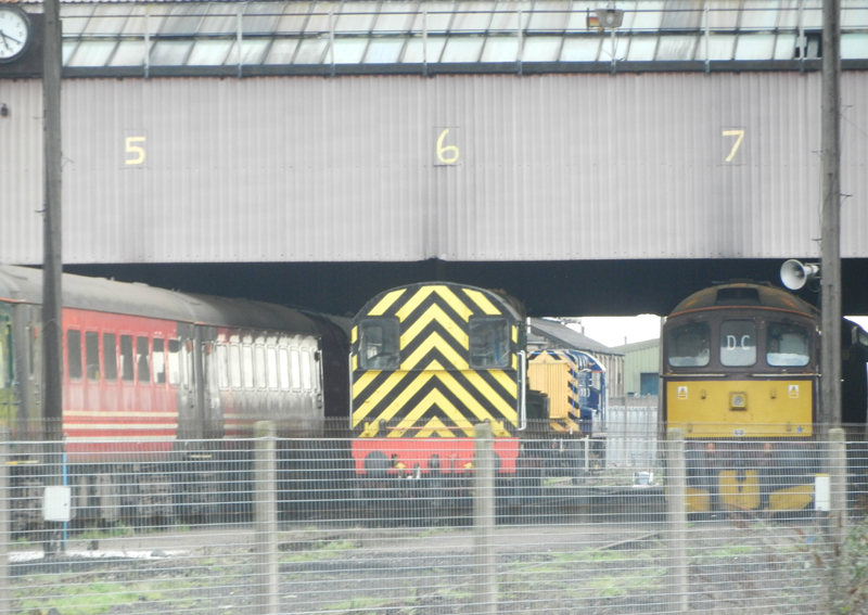 Motive power was an unispiring 66085/213 in top and tail with a genny van (a former 1958 vintage pressed steel brake generator 6310 (ex 975325) converted in 1973 to supply three-phase supply to loco hauled mark 3 HST sets then again modified in 1999 to supply conventional electric supply to loco hauled coaching stock seemed noisier than the sheds…) plus 10 x mk i/ii.