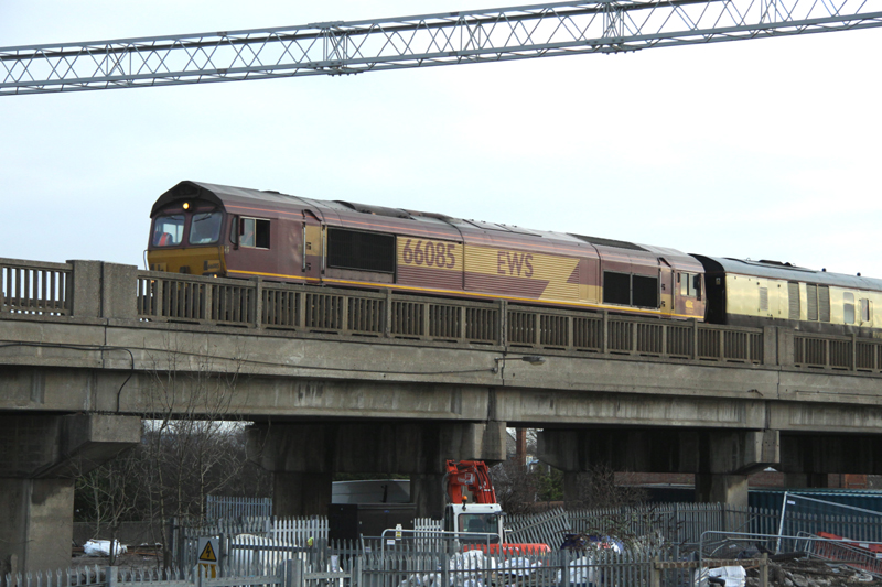 Returning from out West 66085 returns over the Bletchley flyover a Mark Beal phot