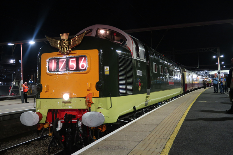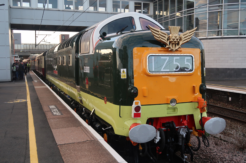 Looking good in green, D9000 55022 “Royal Scots Grey” prior to starting up and leaving Wolves with the tour for Newcastle via Carlisle