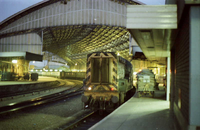 An unidentified 08 with mail/parcels traffic being unloaded at Temple Meads around 4am on July 8th 1984