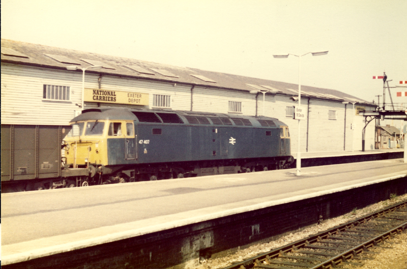 Genny 47407 is an unusual sight on ballast at Exeter St Davids, July 8th 1984