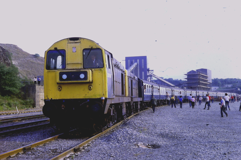 20169 and 20184 at Meldon with most tour participants taking in the quarry scenery on July 8th 1984, thanks to Dave Spencer for the phot
