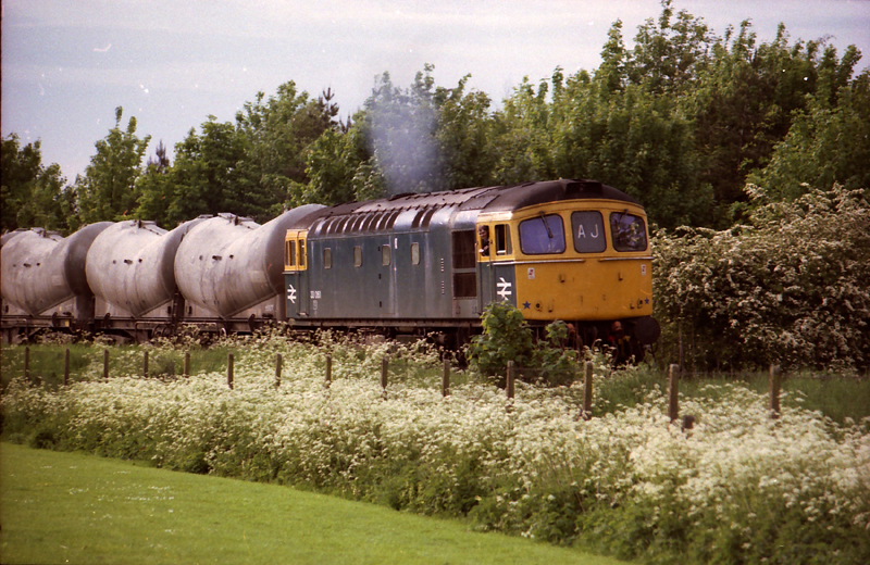 Running as a single train this was, post 1972, the heaviest regular train on the branch as the cement flows were normally run in portions. Oil traffic kept the branch alive beyond the demise of the cement traffic and was the last branch revenue earning traffic until the oil depot closed in April 89 and the flow ceased.